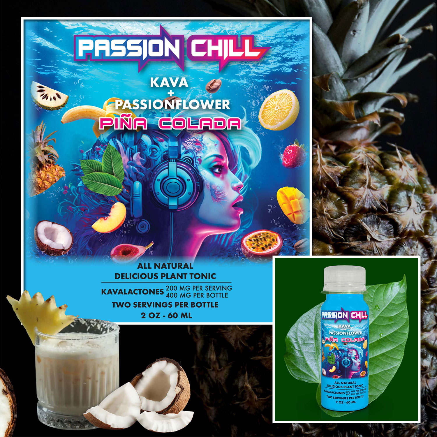 Passion Chill. 400 mg kavalactones. Pina Colada Flavor