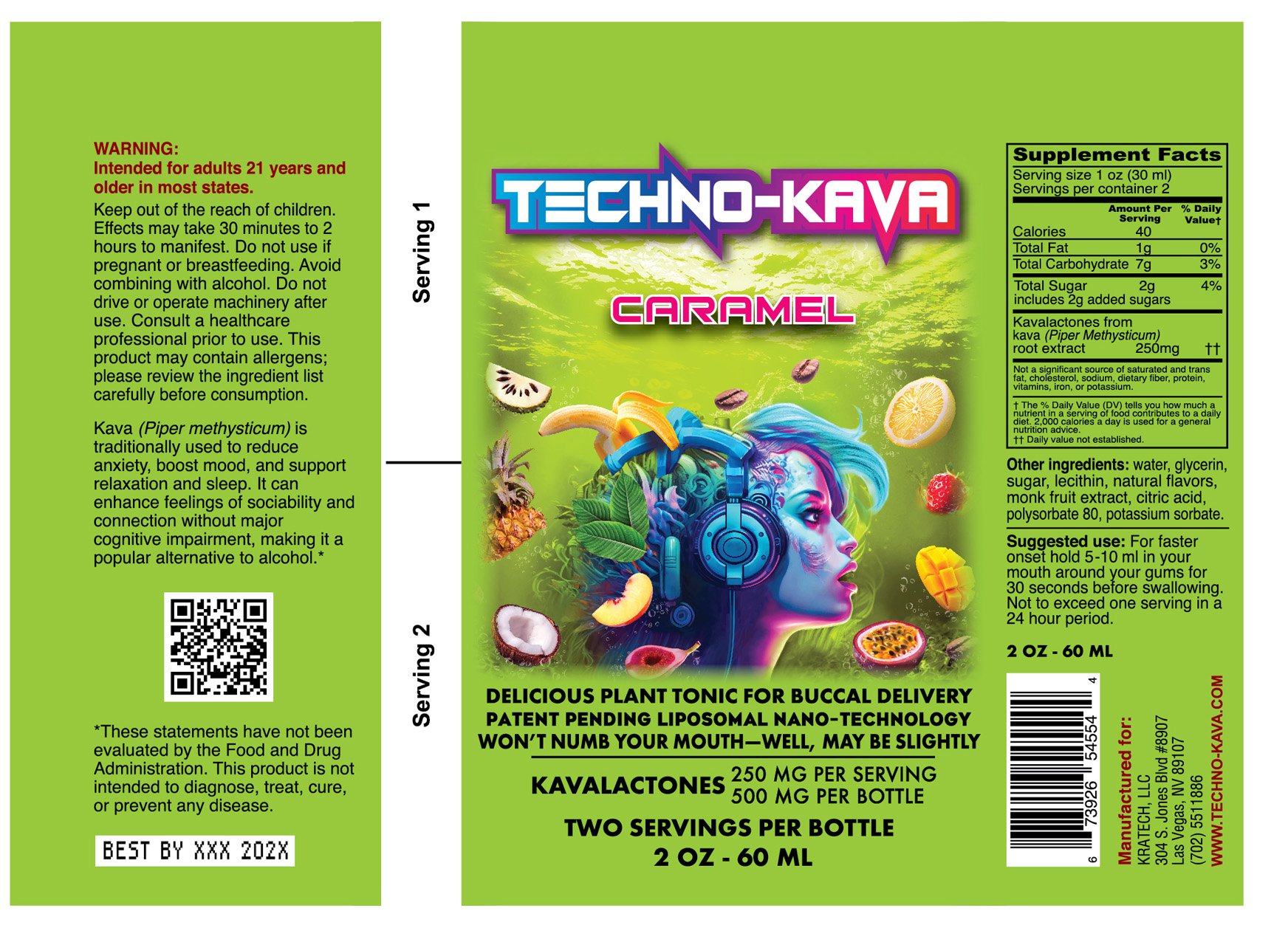 Techno-Kava. 500 mg kavalactones. Caramel Flavor